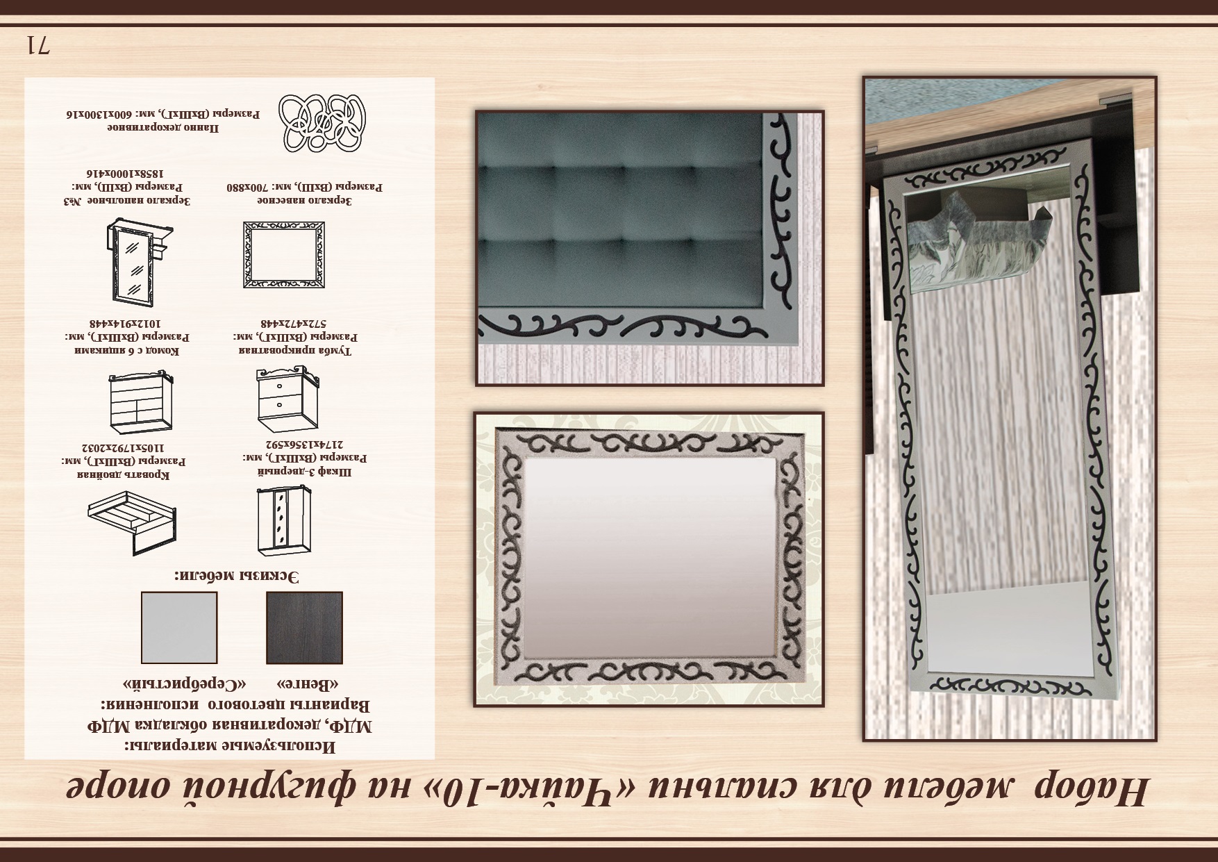 Спальня Чайка 10 с целиком и в разбивку: : шкаф, кровать, комод, зеркало, тумба Модификатор цены: